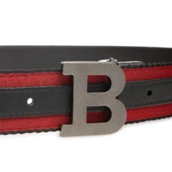 From the B Buckle Collection. Iconic buckle secures an Italian-made belt that reverses from sleek leather to striped textile.