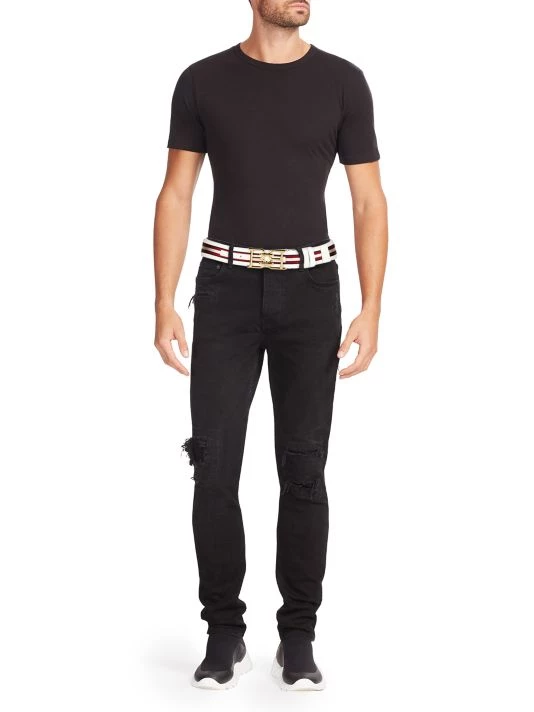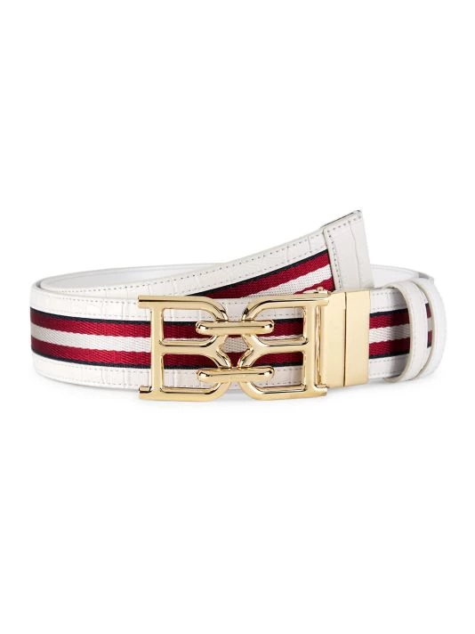 Crafted of leather, this belt is adorned with a stripe motif finished with a signature mirrored B buckle.