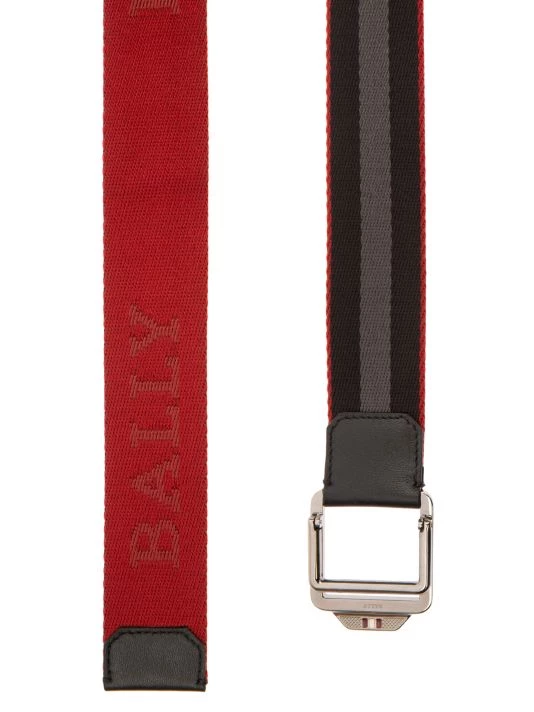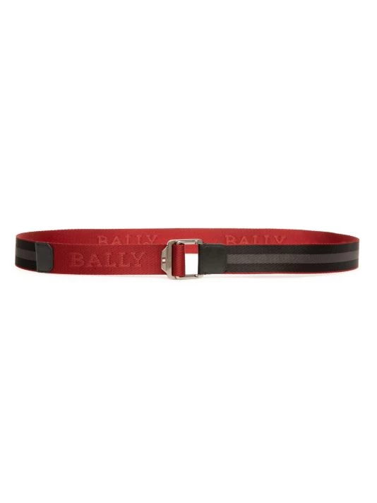 A stitched logo and tonal stripe pattern accent this stylish belt.