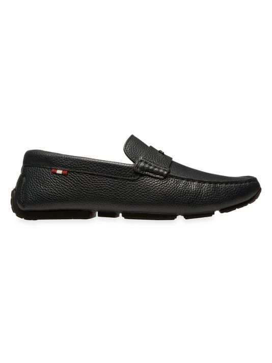 Crafted from luxe grained leather, these driving shoes have classic construction with a metal logo across the vamp.