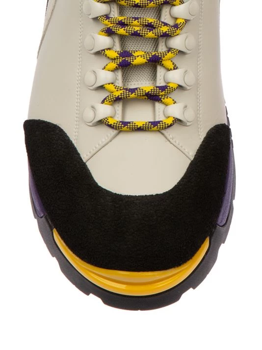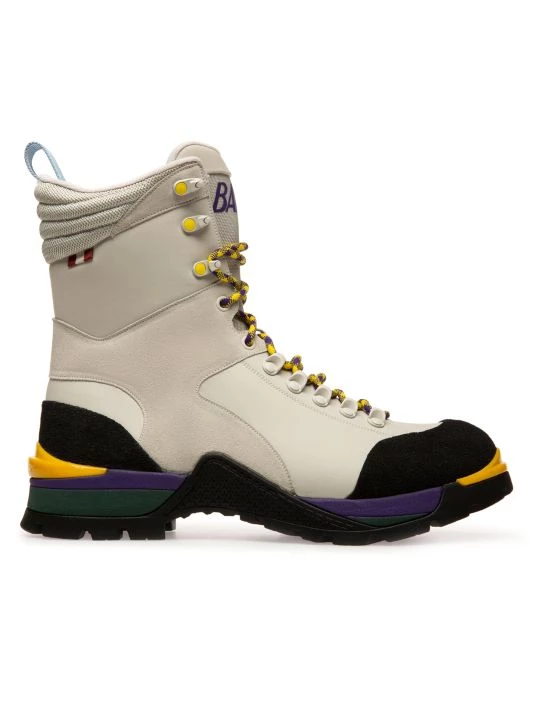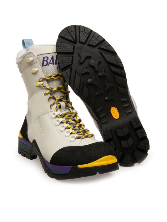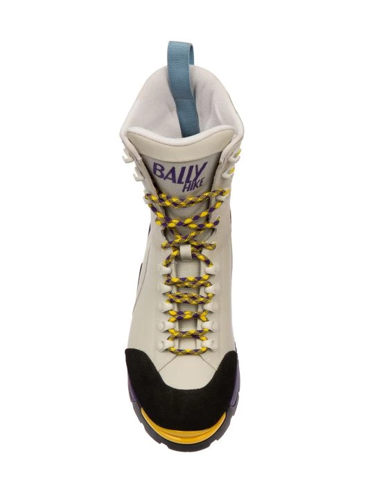 From the Bally Hike Capsule Collection. These hiking boots were made for the mountain with a durable rubber sole and laces reminiscent of bungee cord.