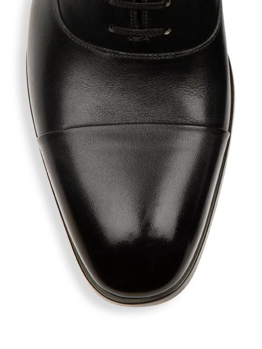 From the Lancy Collection. Calfskin cap toe oxford with a rubber sole.