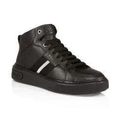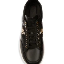 The Winton sneakers in black leather feature Bally Stripe and B-Chain detailing, croc-embossed leather to the heel and a rubber sole.