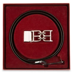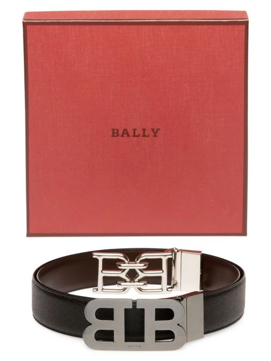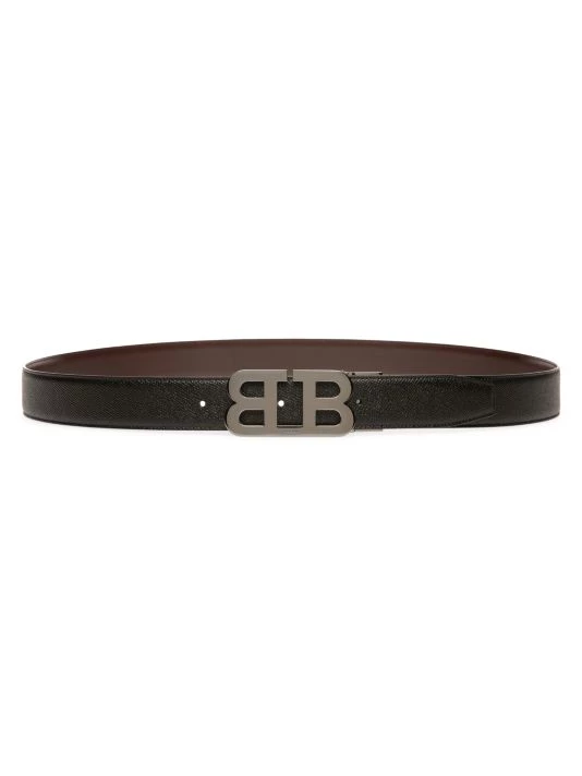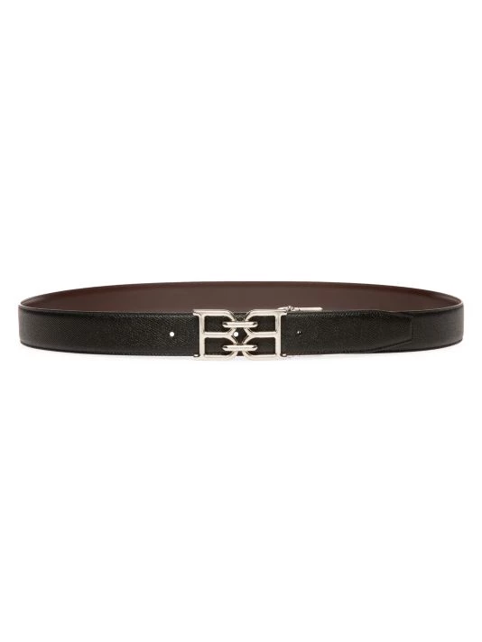 Sophisticated leather belt with mirrored logo hardware.