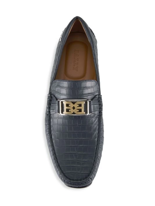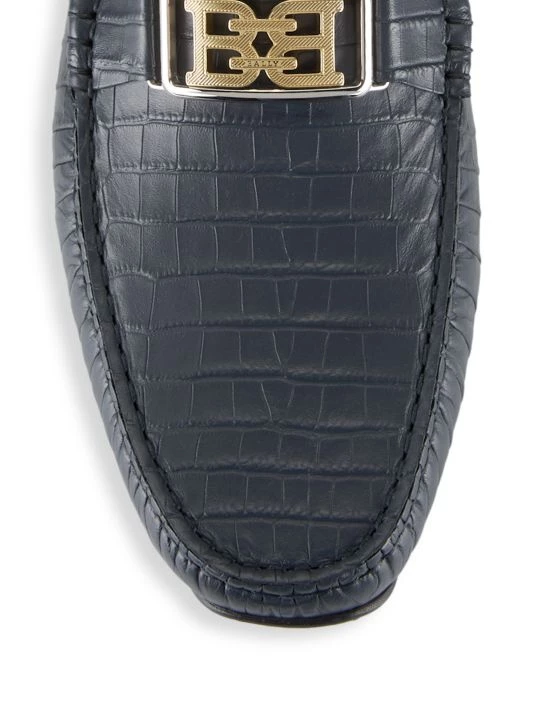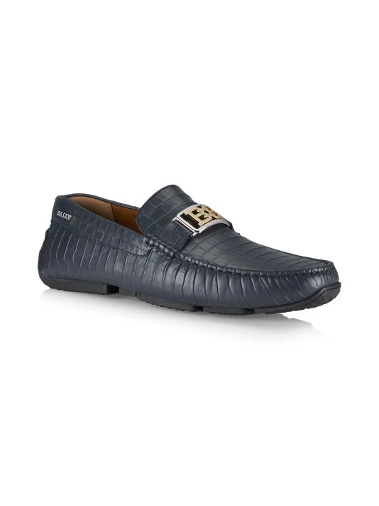 Bally’s Palan driver shoes are made in Italy of crocodile-embossed faux leather. A mixed-metal logo appliqué adorns the vamp for an elevated finishing touch.