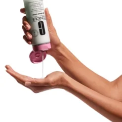 Lightweight milky-liquid formula cleanses skin of pollution and impurities and removes face, lip and eye makeup in one comforting yet refreshing step. Leaves skin feeling fresh and clean. Appropriate for sensitive eyes and contact lens wearers. Non-acnegenic. If you have drier skin, try Clinique’s All-in-One Cleansing Micellar Milk + Makeup Remover Skin Types 1 & 2.
