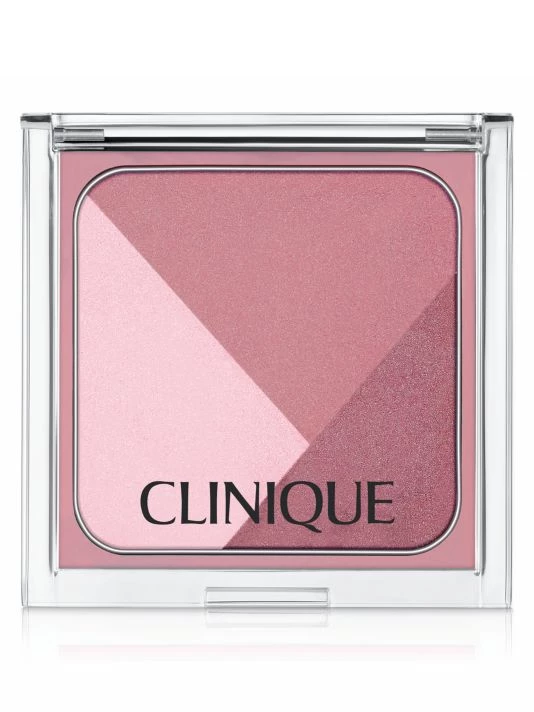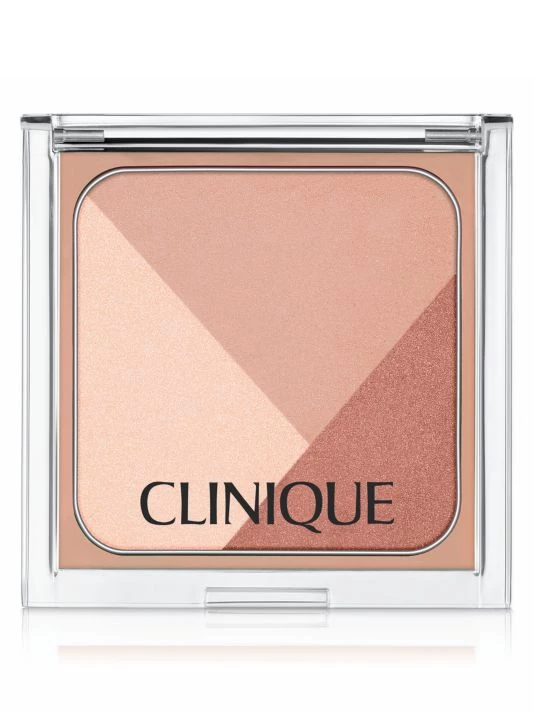 - Use Clinique’s blush brush to apply mid-toned shade as blush, deep-toned shade to contour, lightest shade to highlight