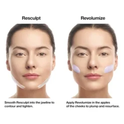 Apply where needed twice a day on face, neck and décolletage. If you’re noticing a sagging and are looking to visibly lift and contour, apply Resculpt all over your face. If you’re seeing a loss of volume and are looking to visibly fill and plump, apply Revolumize all over your face. If you’re seeing both sagging and loss of volume, and want to visibly lift and reshape your whole face, apply both Resculpt and Revolumize to target areas.